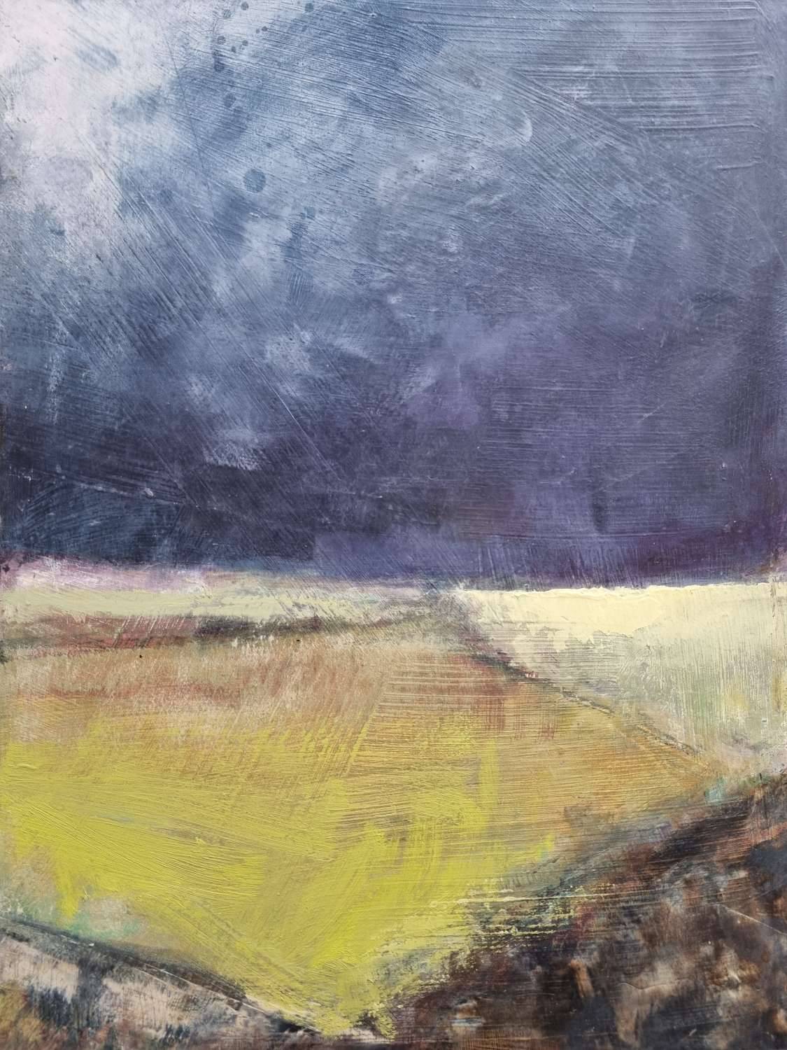 I loved my recent drawing trip to this area of West Penwith in Cornwall. I am fascinated by the sense of time and history in the fields and ancient walls. I wanted to capture a sense of history in the landscape and the intensity of the moment waiting for the storm to break. I also like the idea of looking beneath the surface, what lies below the grass in this primordial soil, what stories could it tell. I’m a huge fan of the TV show “The Detectorists” – in fact, as a child I desperately yearned for a metal detector and wanted to become an archaeologist (as well as a vet and an artist). This brings back memories of digging up old pennies, clay pipes and bottles in the back garden and surrounding areas, and then setting up a “museum” on my bedroom windowsill, which my parents had to pay 10p to come in and visit. I am drawn to places that have that sense of humanity over thousands of years. A theme I will explore more in my work.