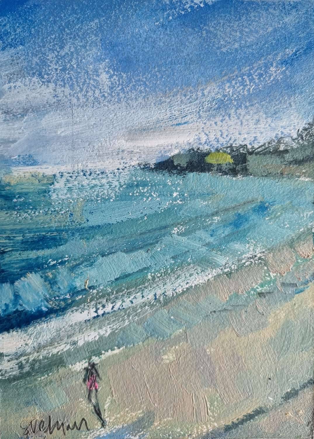 This small painting is painted using water mixable oil on Arches Huile paper which is bonded to board and comes in a white tray frame.