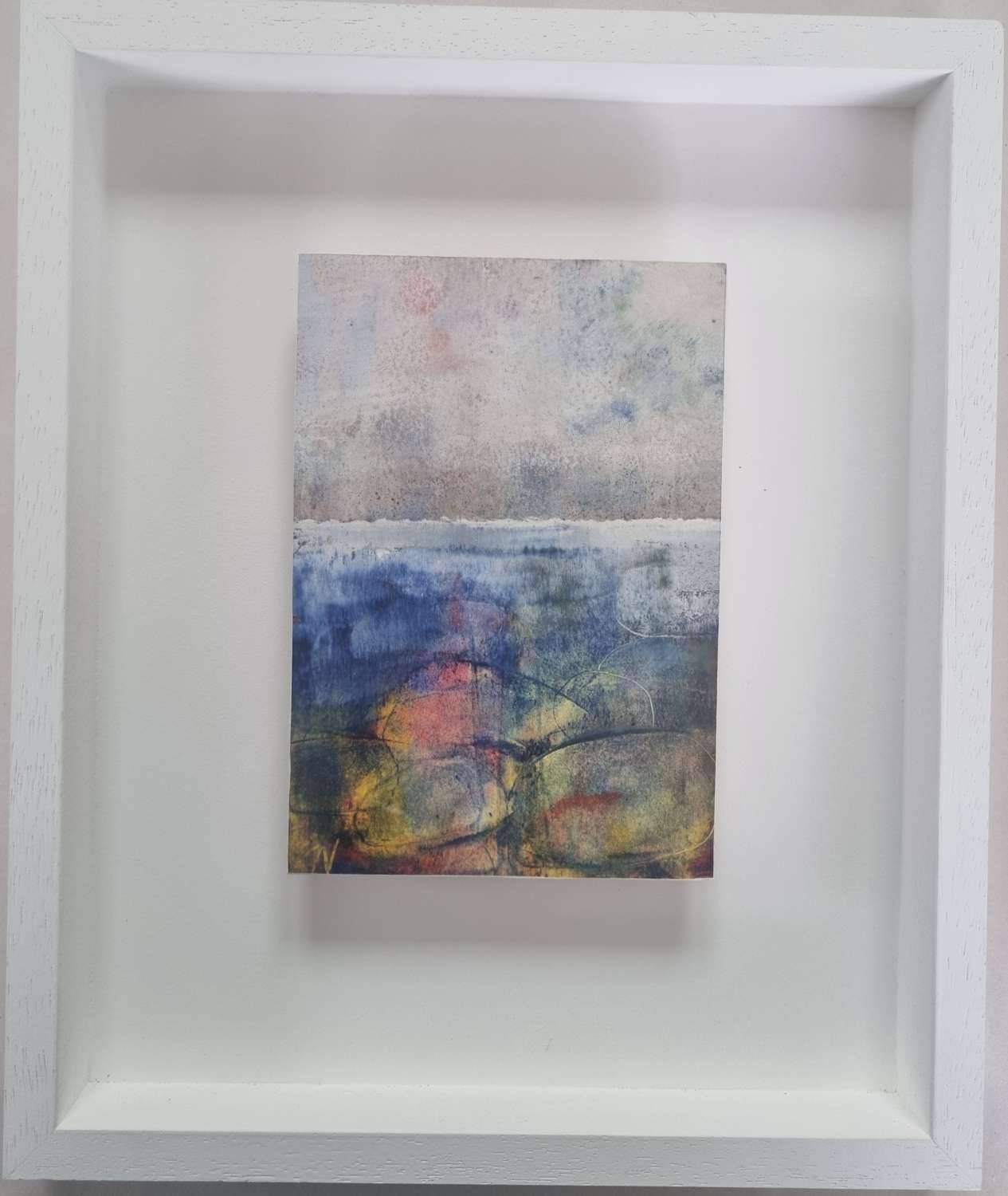 This is painted using oil and cold wax on Arches Huile paper. They are finished and sealed with a coating of cold wax gently buffed to create a soft sheen which accentuates the textures.