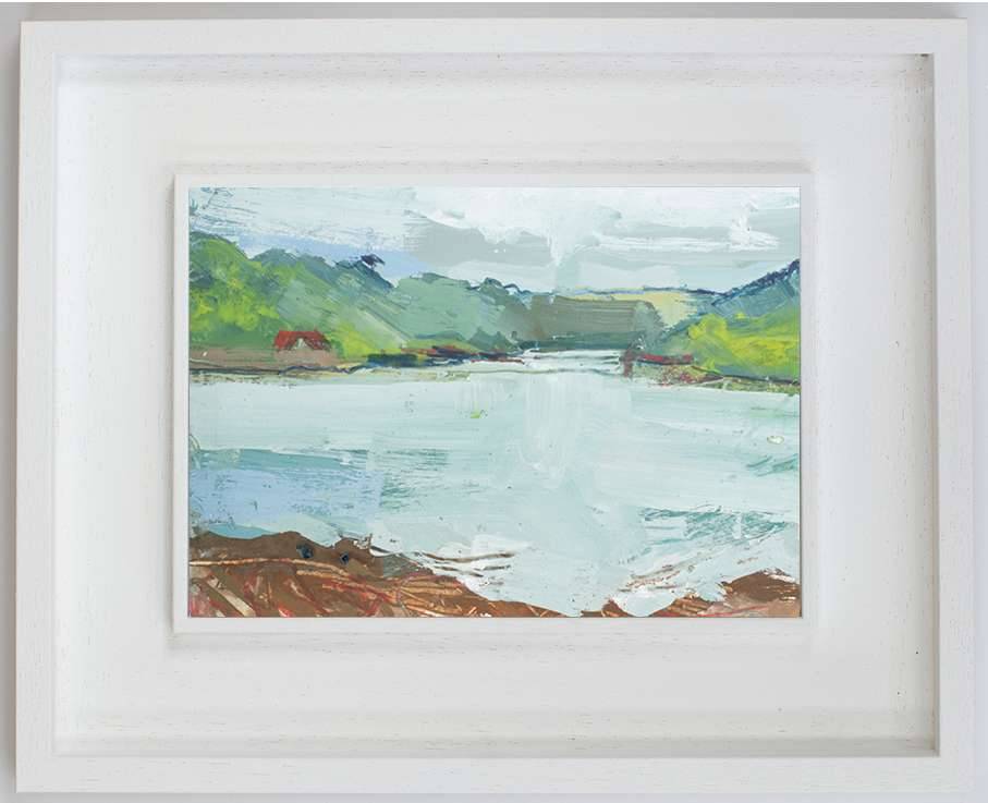 From My Helford Sketchbook collection. Painted in gouache, with an accompanying photo of handwritten text and location photo. Framed in a white wood St Ives frame measuring 32 x 25.5cm. Price includes postage and packing for UK addresses.