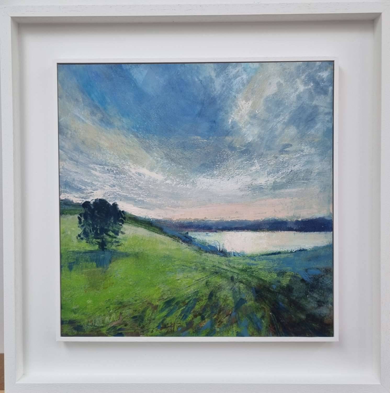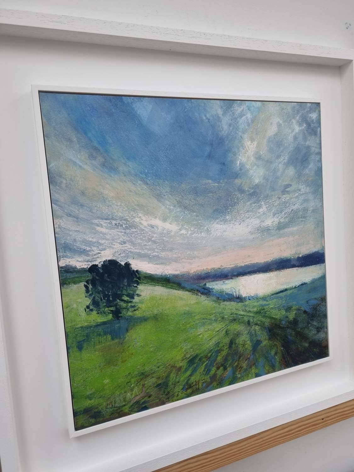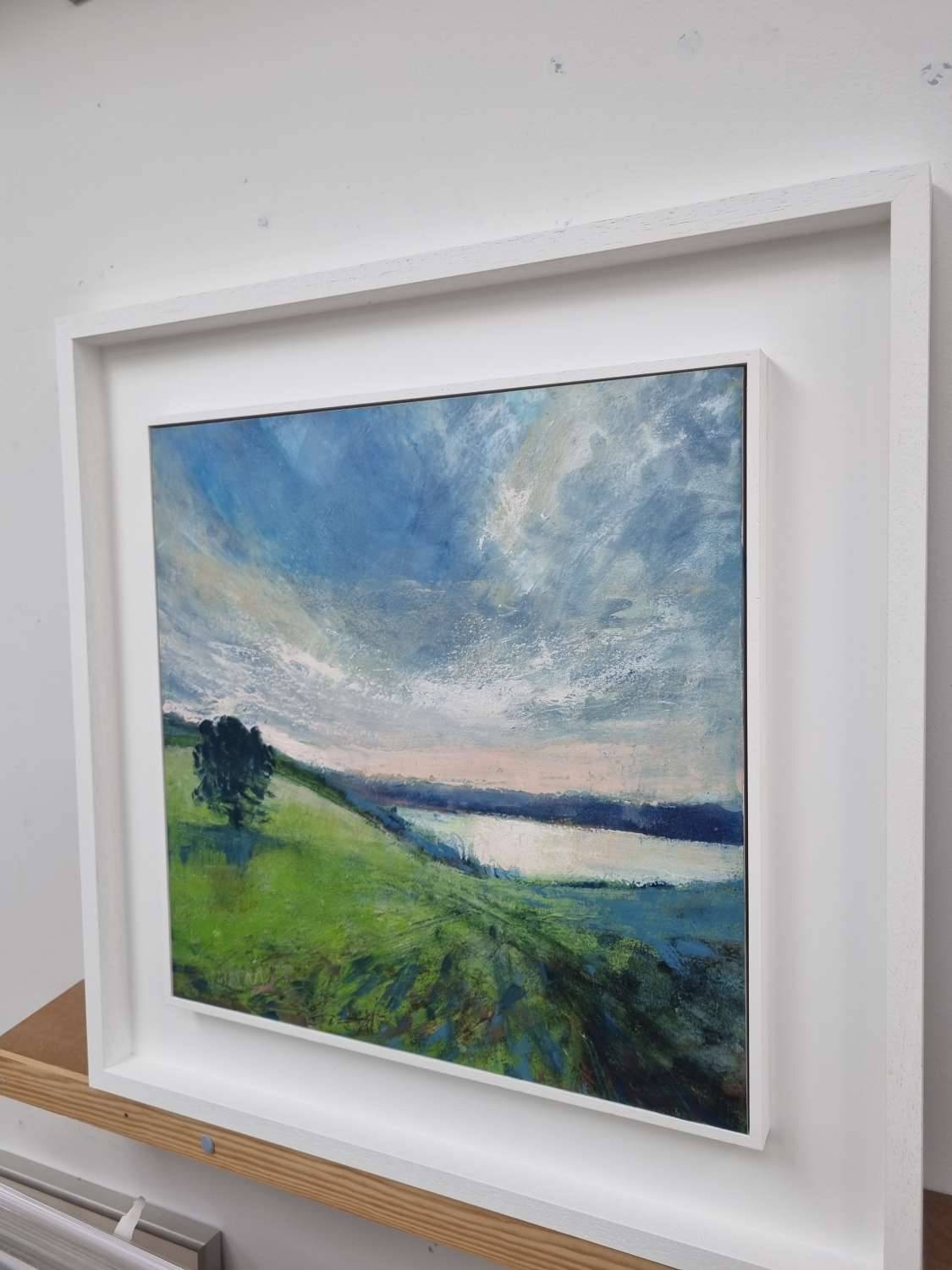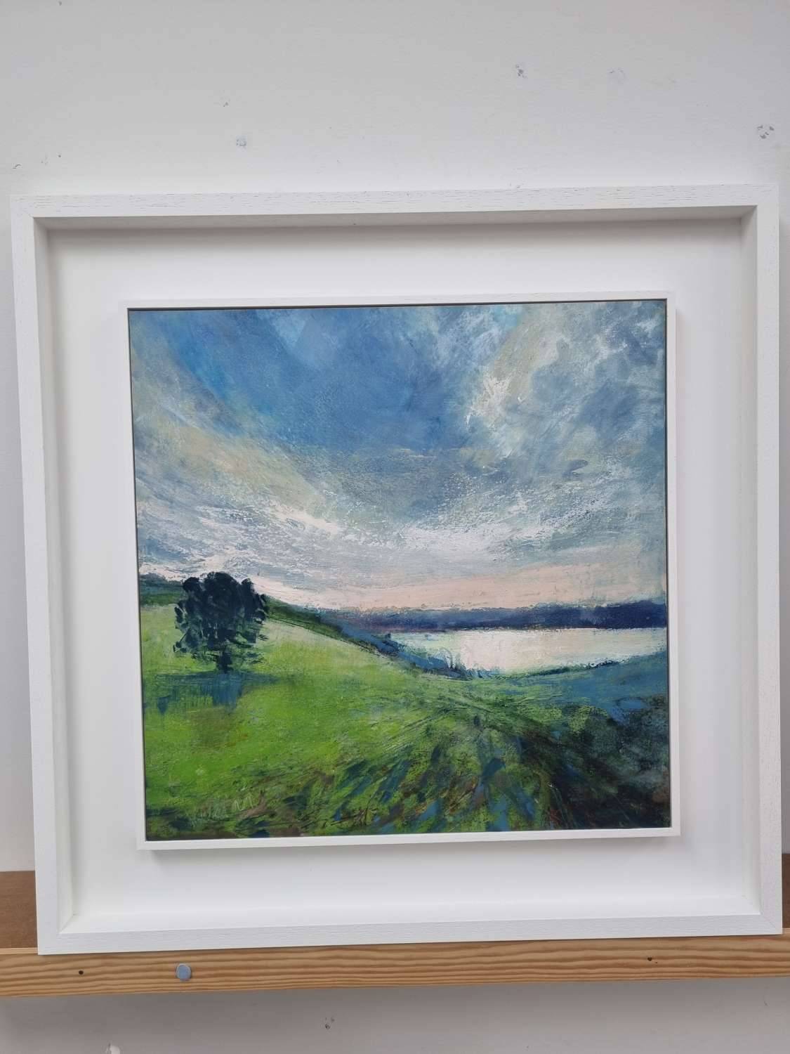 Painted on Arches Huile paper, protected with a clear wax coat, mounted on board and framed with a St Ives tray frame in white wood which measures 6cm.