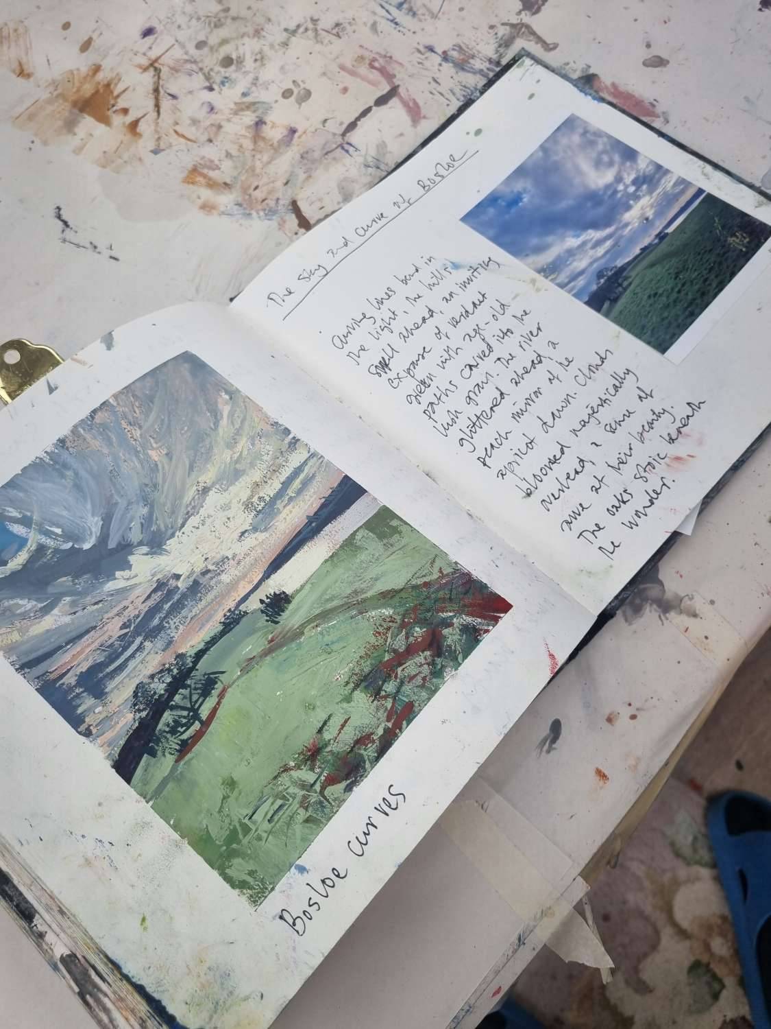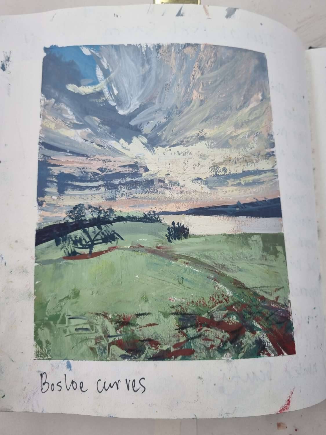 Inspired by a page from my Helford Sketchbook, a favourite view and walk across the fields above Grebe and Porth Sawsen.
